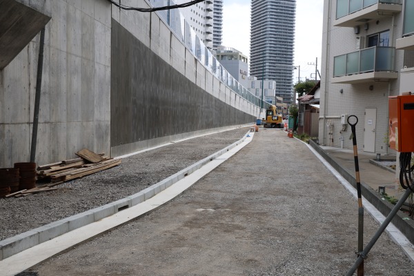 また今回、階段とあわせて、階段から直進すると中原消防署前交差点に至る側道も整備されていました。