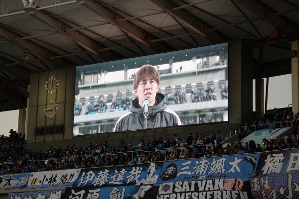 これからも僕は引退してしまいますが。皆さん、普段の生活の中で落ち込んでしまうことがあるかと思いますが、そんな時は等々力に来て選手たちからパワーをもらってください。選手たちは必ずサポーターや皆さんのことを大事にしてくれます。