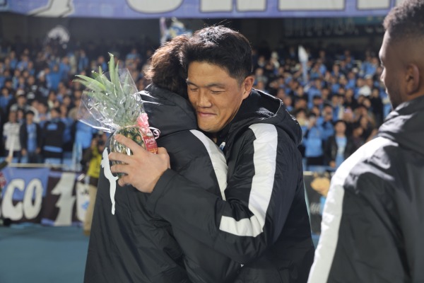 2016年に呼んでくれた川崎フロンターレにありがとうございます。10年間いつも一緒に戦ってくれたファンの皆さん、スポンサー、関係者、選手たち、監督、コーチングスタッフ、ボランティアの皆さん、そして私の兄貴、金さん、本当に感謝します。