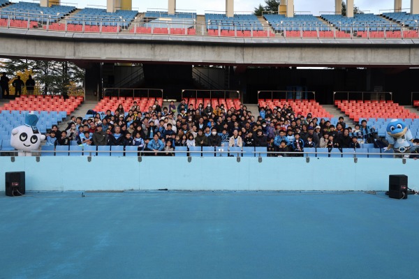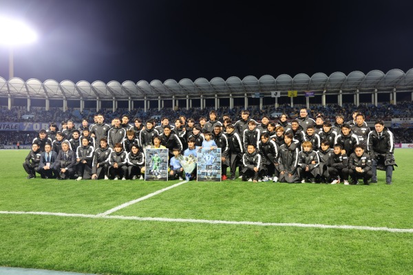 両選手の挨拶、これまでかかわった皆さんからのメッセージののち、改めてサポーターの皆さんとともに記念撮影をしました。