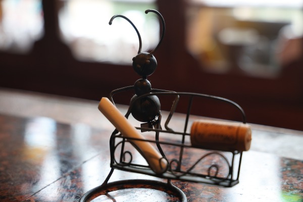 伝票をおさえるペーパーウェイトは、DIY工房併設らしく磨かれた木材でした。