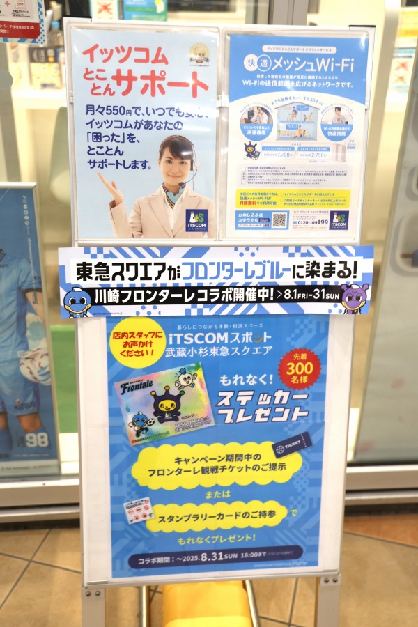 川崎フロンターレと武蔵小杉東急スクエアのコラボ企画「東急スクエアがフロンターレブルーに染まる!」が、8月1日~31日まで開催されています。