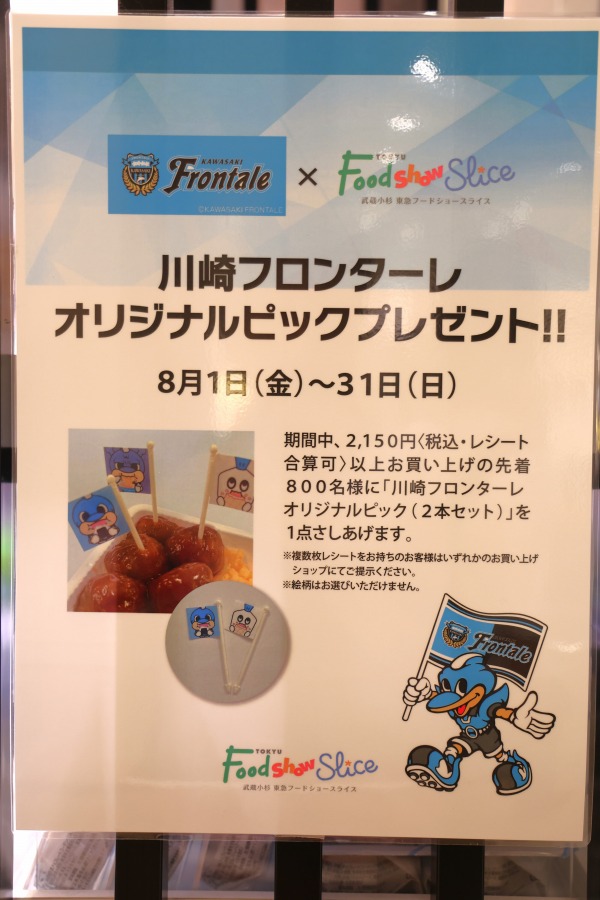 またフードショースライスは、期間中2,150円以上のお買い上げの先着800名様に、川崎フロンターレのオリジナルピック(2本セット)がプレゼントされます。