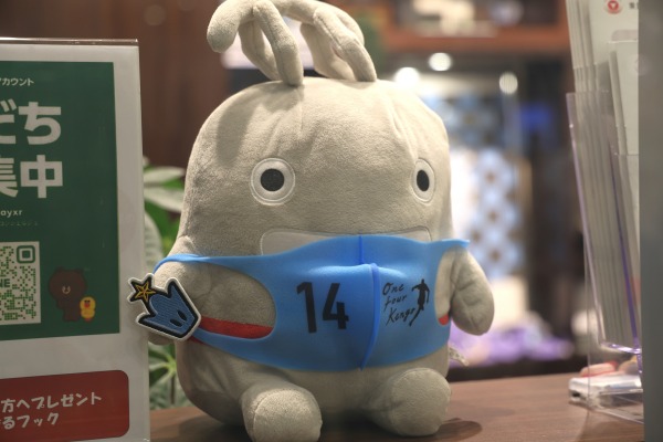 メインは2階のエントランスのラッピングですが、それ以外にも各所にフロンターレ色が配置されていました。