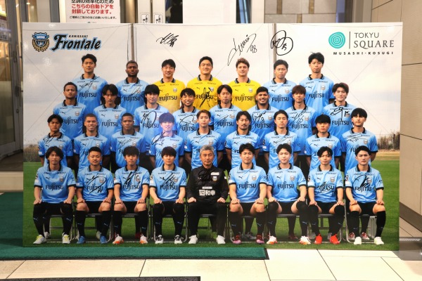 これは2025シーズンの新体制で撮影されたもので、プレミアリーグのトッテナムに移籍した高井幸大選手なども残っています。