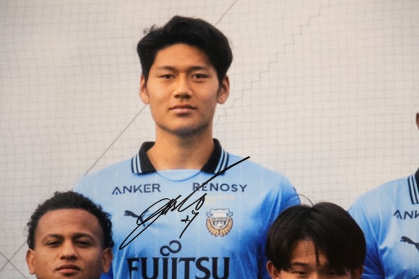 上記は新年挨拶回りで武蔵小杉に来た、早稲田大学出身のDF神橋良汰選手ですね。