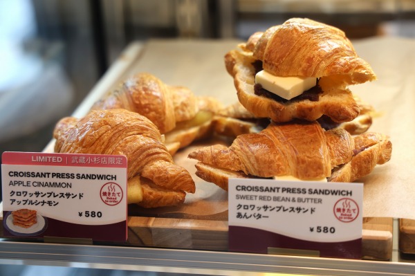 ショウケースに並んでいるのは、普通に焼き上げたクロワッサンをサンドにしている状態ですが、これをオーダーするとプレスして焼いたうえで提供されます。