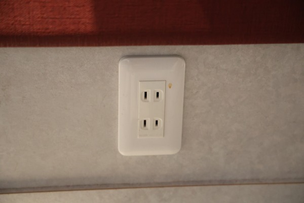ところで前回、「カウンター席にはコンセント」とご紹介したのですが、テーブル席の下を見るとここにもコンセントがありました。