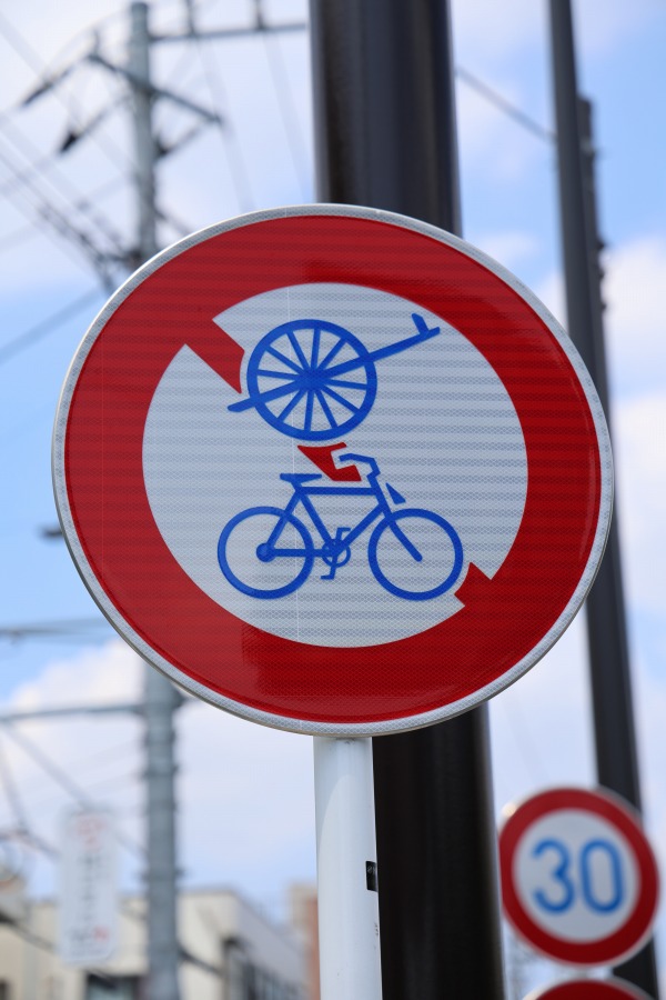 自転車通行止めは見てわかりますが、リヤカーのような絵柄があまり見たことがありませんでした。