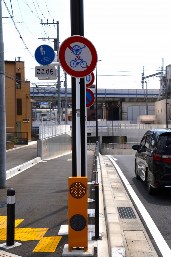 東急線のアンダーパス「木月トンネル」でリヤカー絵柄の見慣れぬ標識「自転車以外の軽車両通行止め」を発見
