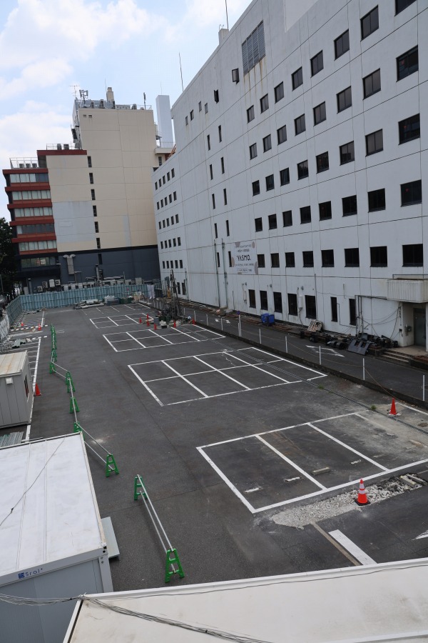 この規模の建物を解体するにあたって、隣が駐車場が作業ヤードになって工事が進めやすそうですね。