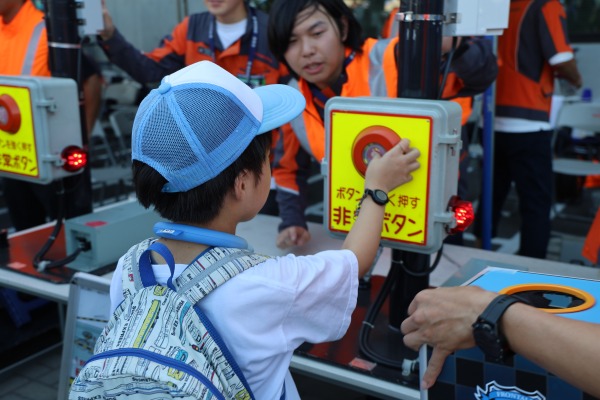 鉄道駅などに設置されている、非常ボタンの体験もありました。