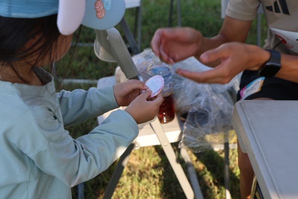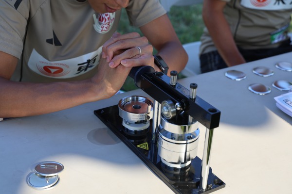 キックターゲットや、コーチ陣らによるオリジナル缶バッジ作りを行っていました。