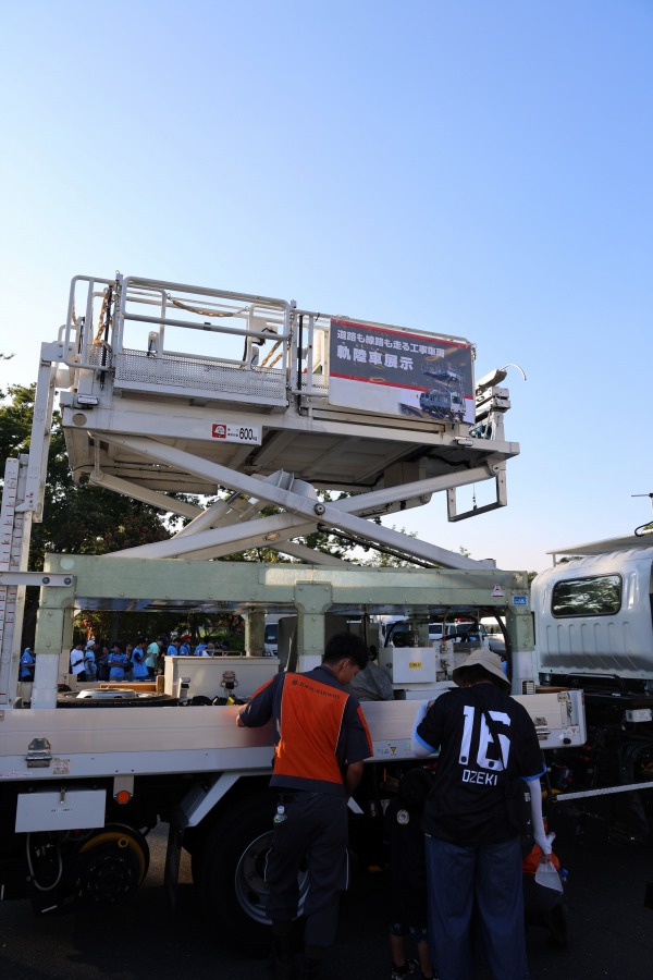 電線の点検に使われるため、車体上部の作業台を上げ下げできる構造になっていまして、本イベントでは操作が体験できました。