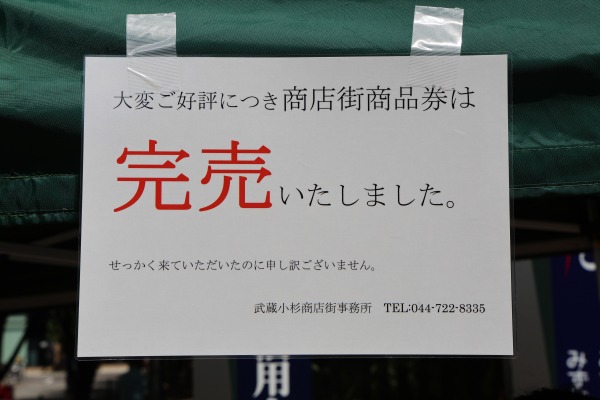 そのようなわけで、商品券は早々に完売して、販売テントに掲示が出ていました。