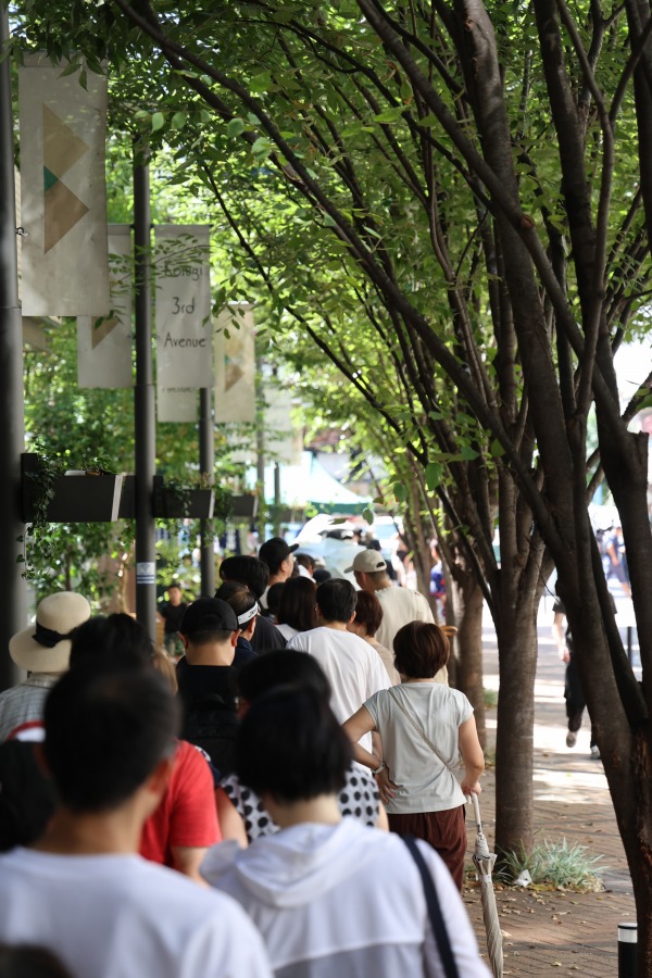 行列がずっと伸びていると、人が通行できなくなります。