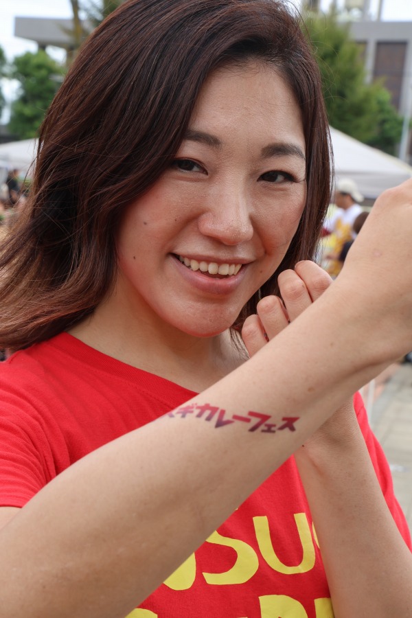 武蔵小杉カレーフェスティバル実行委員会の奥村佑子さんは、「コスギカレーフェス」のペインティングをしていました。