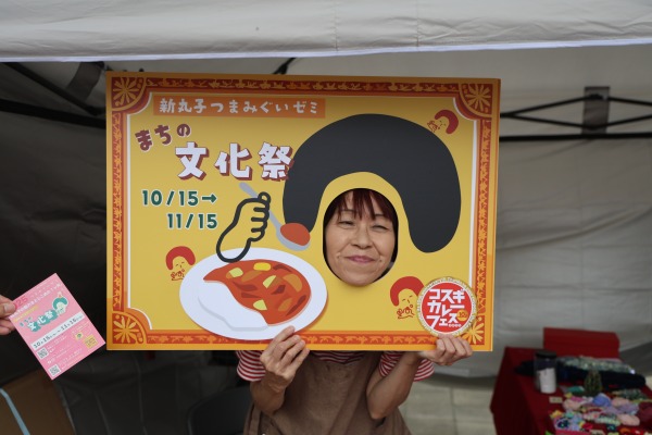 こちらは、2025年10月15日から新丸子での開催予定のイベント「新丸子つまみぐいゼミ まちの文化祭」のPRブースです。