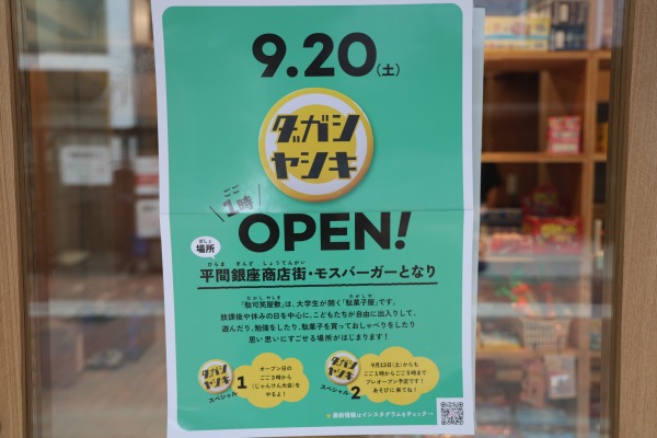 ■「ダガシヤシキ」9月20日オープンのお知らせ