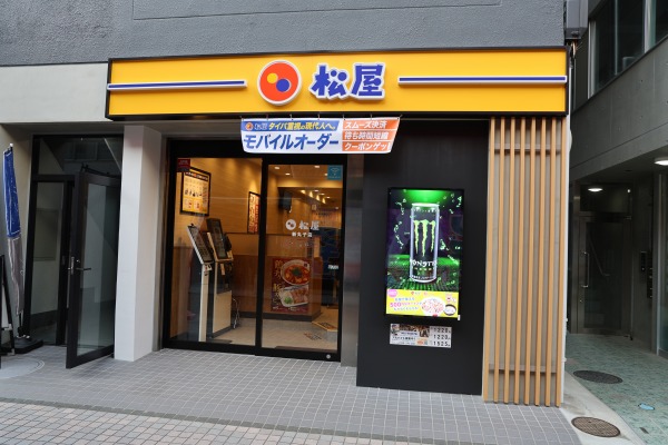 牛丼の松屋と、とんかつの松のやの複合店舗となりますが、これは最近の松屋の店舗では標準のようなかたちになっていますね。