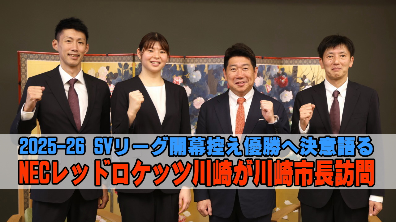 NECレッドロケッツ川崎が川崎市長訪問、2025-26シーズン開幕控え山田二千華選手らが優勝への決意語る
