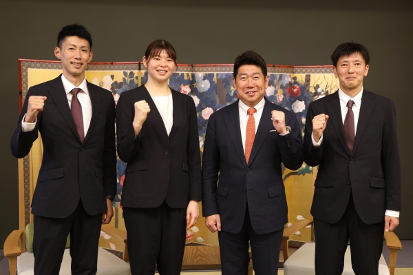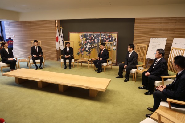 これを控えて、中村貴司ゼネラルマネージャー、中谷宏大監督、山田二千華(にちか)選手が川崎市役所を訪問し、福田紀彦市長らに挨拶や新シーズンに向けての決意を伝えました。
