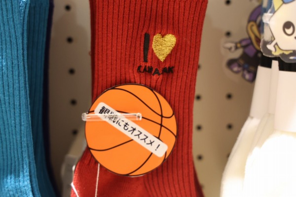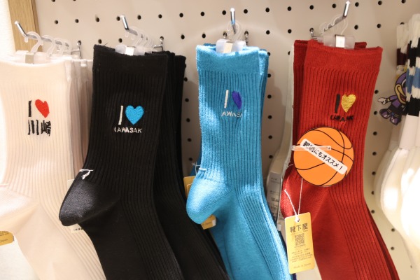 「I LOVE 川崎」刺繍の靴下には、川崎ブレイブサンダースらしいえんじ色のデザインもありました。