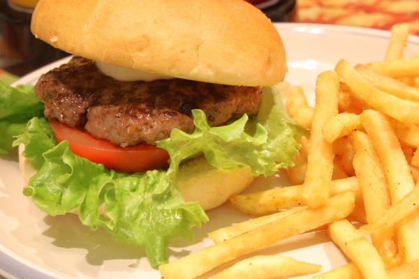 ふわふわのバンズに、肉汁があふれるパティが挟まれています。