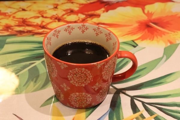 ハワイのコナコーヒーのブレンドが、かわいらしいカップで運ばれてきました。