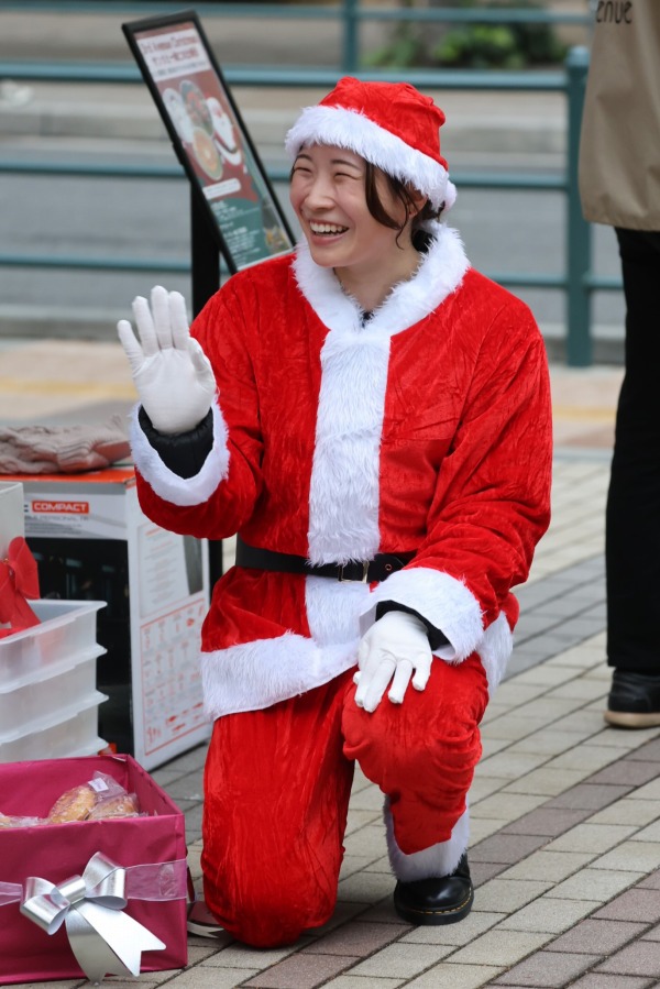 スティームとともに、NECレッドロケッツ川崎からは元選手で現在はU-15ヘッドコーチと地域・社会貢献担当を担う柳田光綺さんもサンタクロース姿で参加してくれました。
