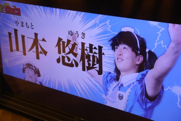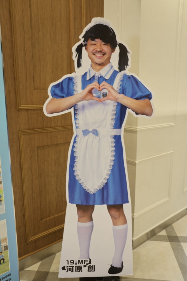 入口には、週刊少年ジャンプの人気漫画「僕とロボコ」とのコラボイベントの際に作られた、河原創選手のコスプレパネルも展示されていました。