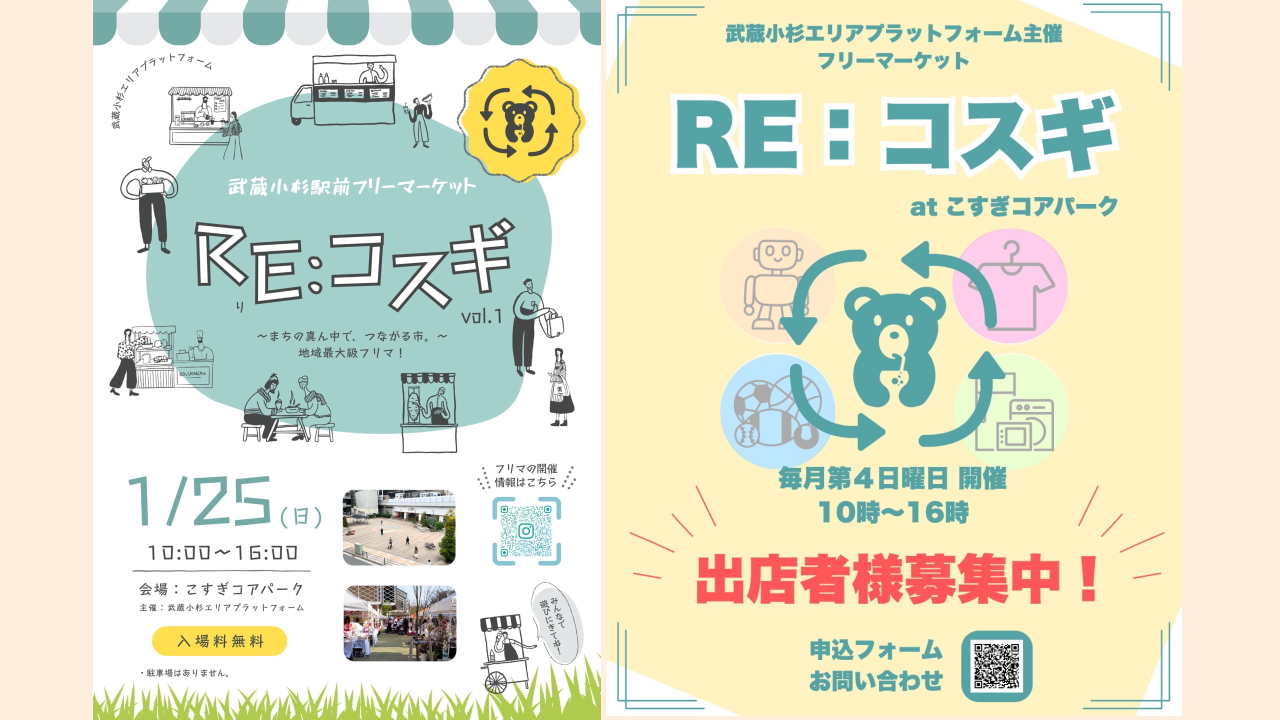 武蔵小杉駅前のこすぎコアパークで、フリーマーケット「RE:コスギ vol.1」が2026年1月25日(日)に初開催されます。