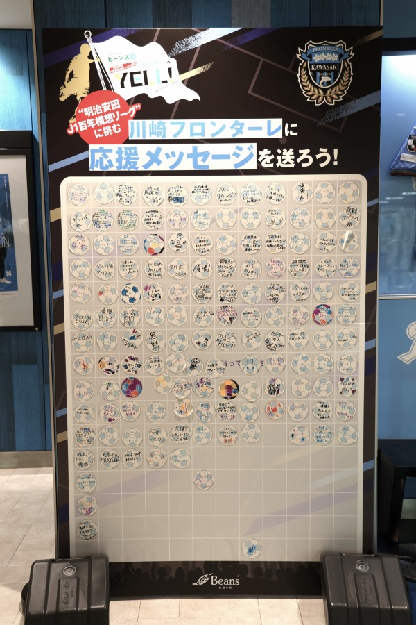 そして今回、1月16日から2月1日にかけて、ビーンズ武蔵中原で川崎フロンターレへの応援メッセージを募集していました。