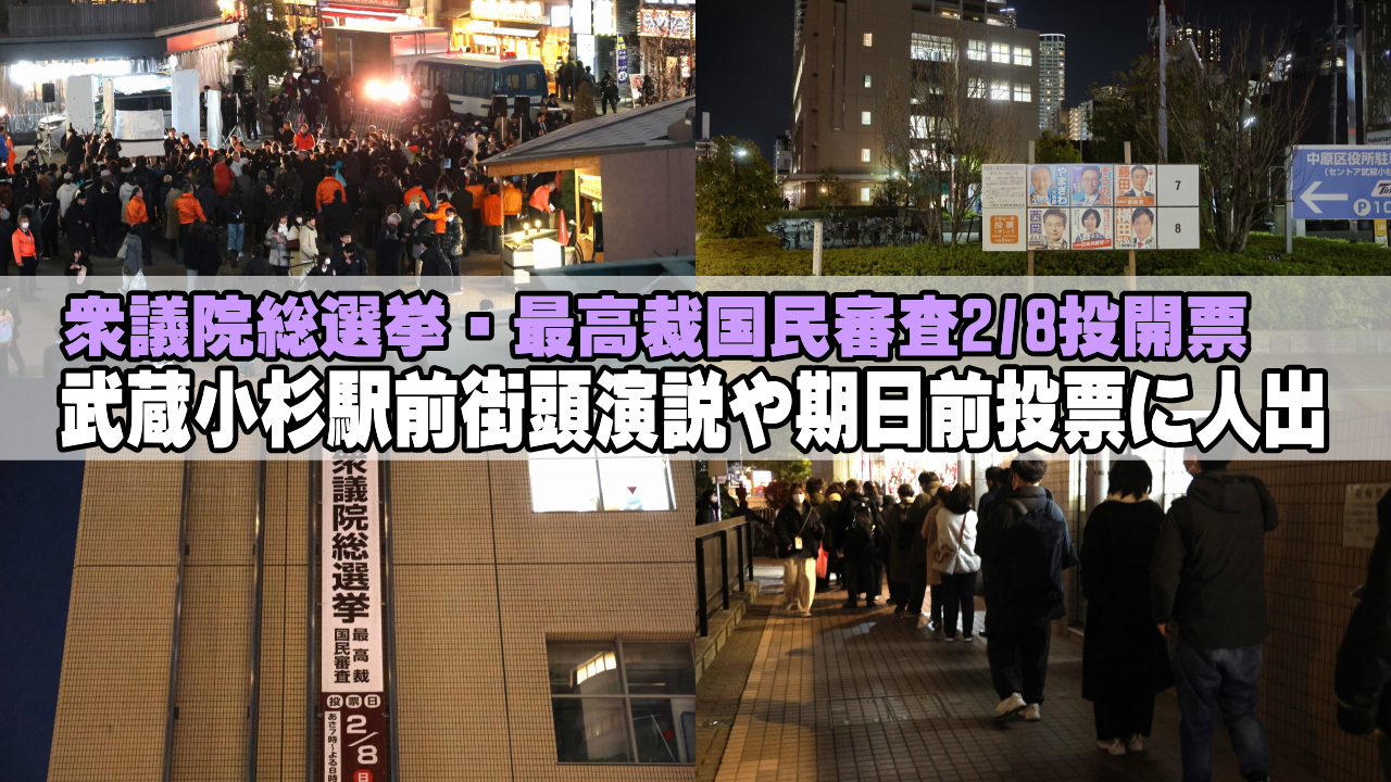 ■衆議院議員総選挙・最高裁国民審査2/8投開票、武蔵小杉駅前街頭演説や期日前投票に人出
