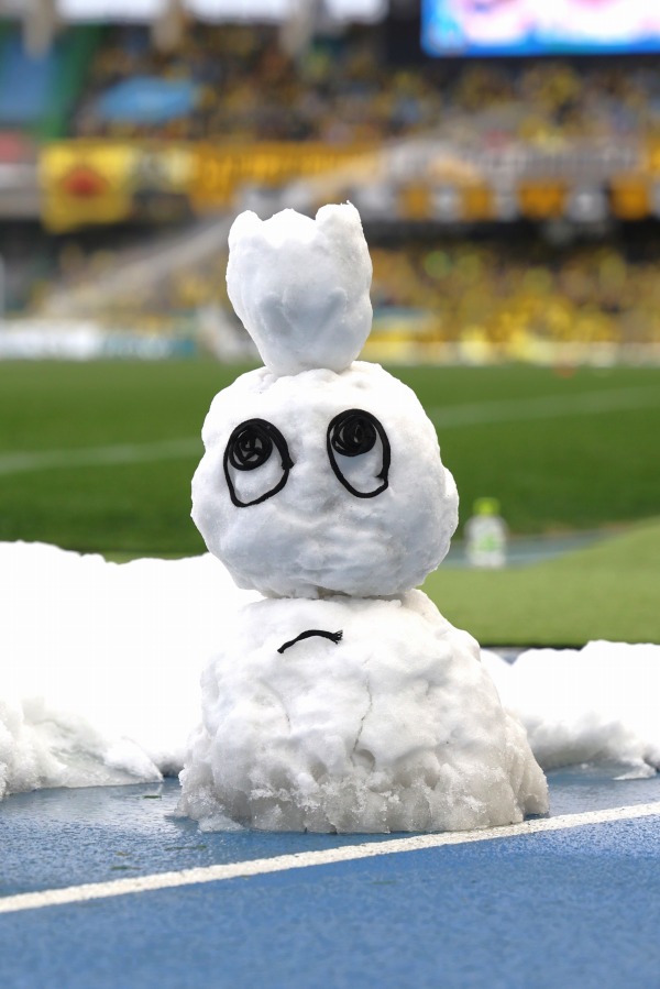 ピッチサイドには雪がまだ残り、カブレラの雪だるまも作られていました。