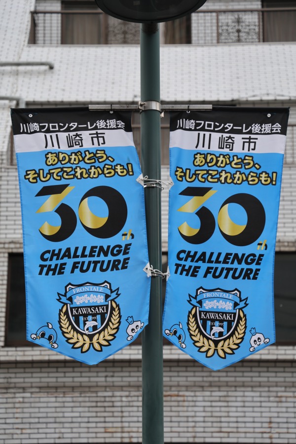 また、中原区内各地のタペストリーも、クラブ創設30周年版に更新されています。