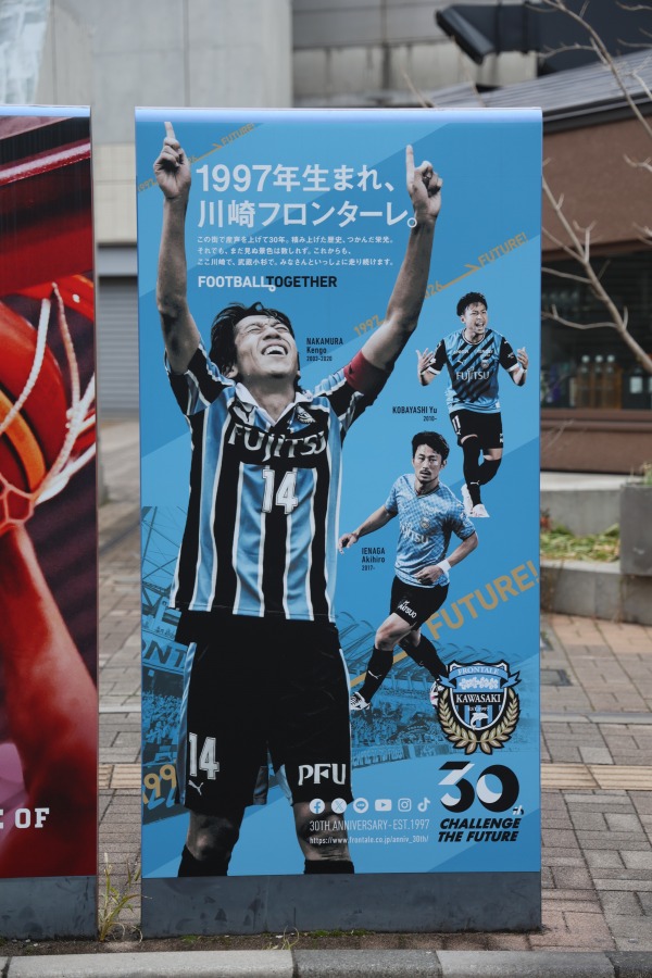 ・2026/2/1エントリ 川崎フロンターレのクラブ創設30周年記念装飾が武蔵小杉駅に登場、歴代27選手らが集結