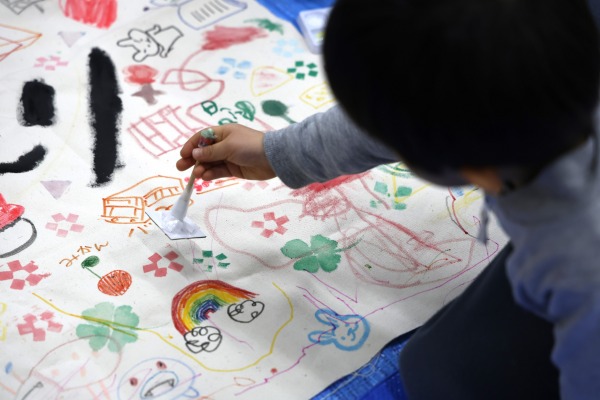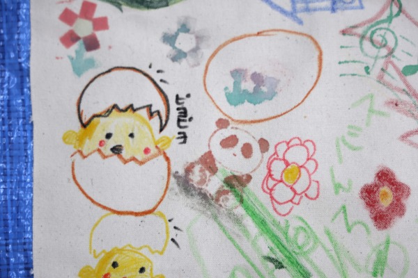 そしてこの日は、大きな布に自由にお絵かきをしていました。