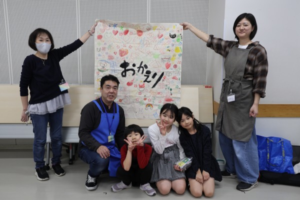 この作品は、今後「おかえりひろば」の入口に看板のように掲示されるということです。