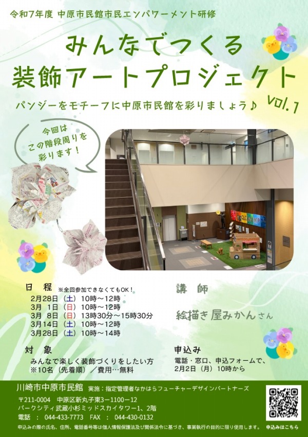 なお、中原市民館では「絵描き屋みかん」さんを講師とした、装飾アートプロジェクトを実施します。