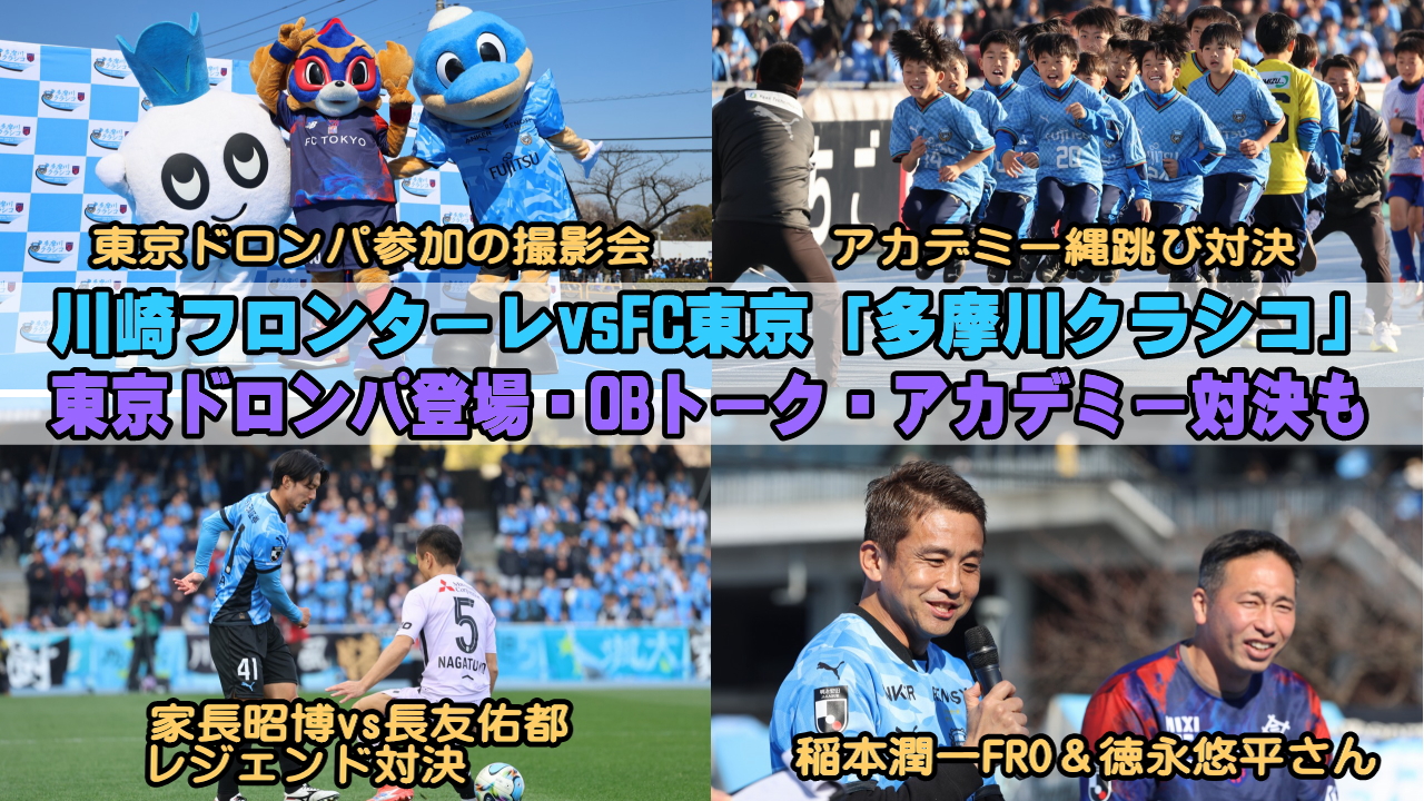 ■川崎フロンターレvsFC東京「多摩川クラシコ」開催、ドロンパ参加撮影会やOBトークショー、アカデミー縄跳び対決も