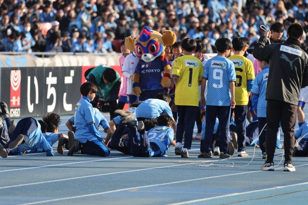 また伝統の一戦「多摩川クラシコ」の企画として、FC東京のマスコットキャラクター「東京ドロンパ」も参加してのマスコット撮影会や、両クラブOBの稲本潤一さん、徳永悠平さんのトークショー、両クラブアカデミーによる縄跳び対決なども行われました。