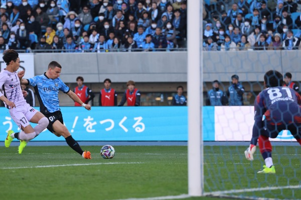 この試合、見事なミドルシュートで川崎フロンターレの1点を挙げたのは、清水エスパルスから新加入の山原怜音選手でした。