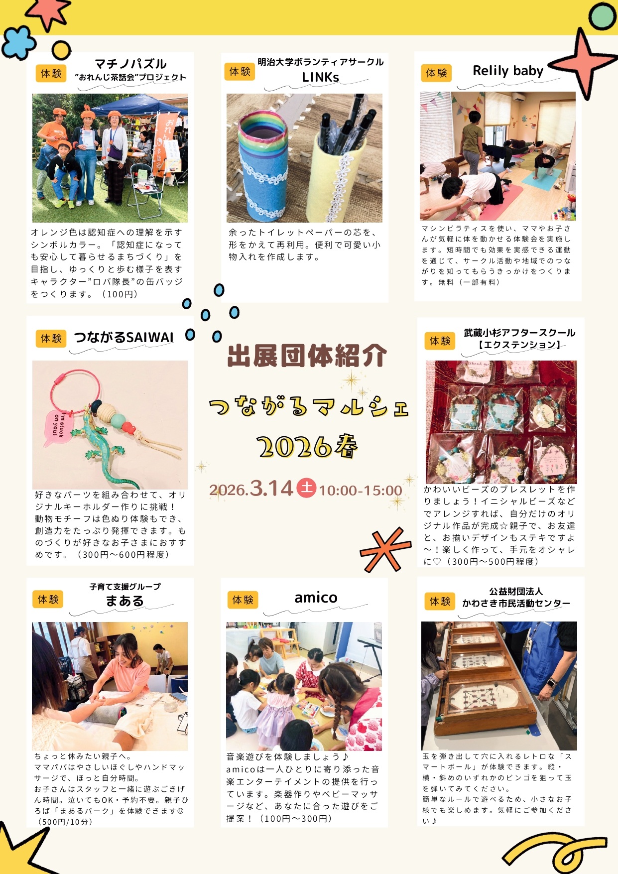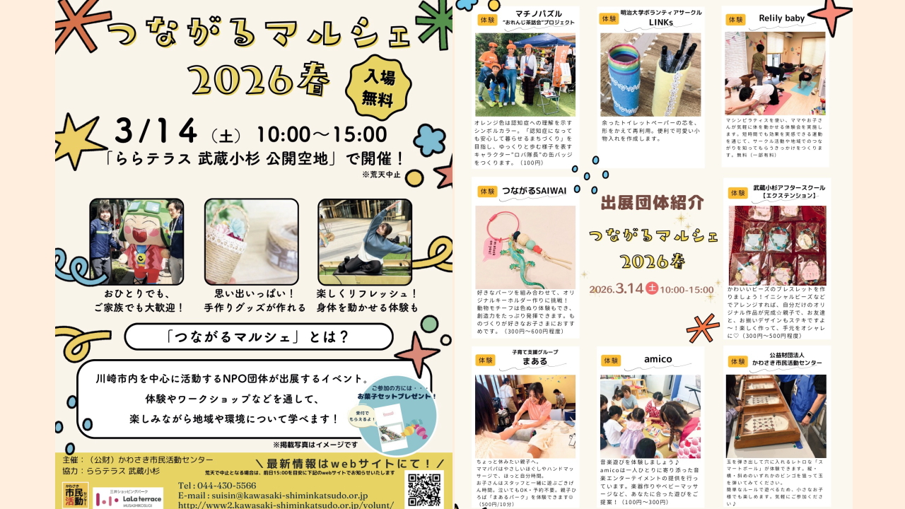 | Web | ●かわさき市民活動センター \3/14(土)開催決定♬/ ~つながるマルシェ2026春~ |