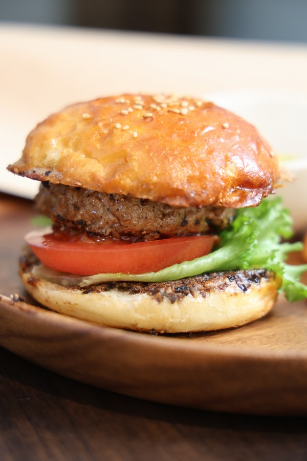 同店のハンバーガーのバンズは、加水率110%で空気のように軽い「飲める食パン(moguAir)」を使用しています。