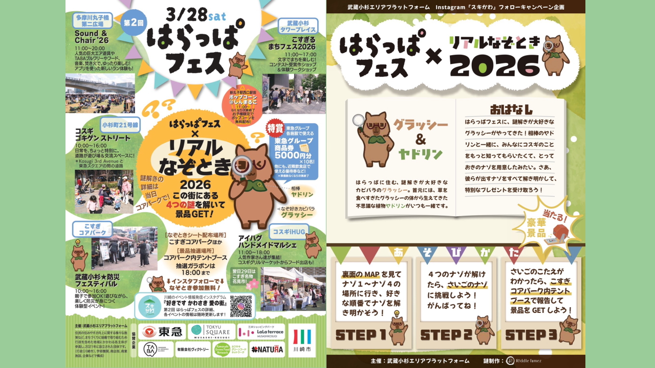 武蔵小杉・新丸子回遊「はらっぱフェス×リアルなぞとき2026」3/28(土)開催、6イベント&謎解きが同時開催