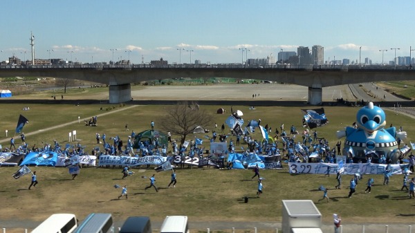 ■武蔵小杉ライフ公式Youtubeチャンネル 川崎フロンターレが3/22マリノス戦国立競技場開催をPR、サポーター238人が多摩川から東急の車窓に