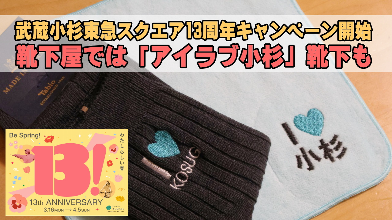 武蔵小杉東急スクエア13周年キャンペーン開幕、靴下屋で「I love小杉」靴下販売し3/20法政二高鉄研・JR・東急3者協力の鉄道フェスタも