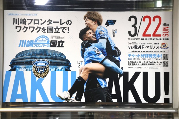 今回の「THE国立DAY」に関しては、川崎フロンターレがサポーターらに呼びかけ、この大一番をPRするイベント「東急の車窓から~東急電鉄に乗ってみんなでMUFG国立へ行こう大作戦!!~」も3月15日に開催されました。
