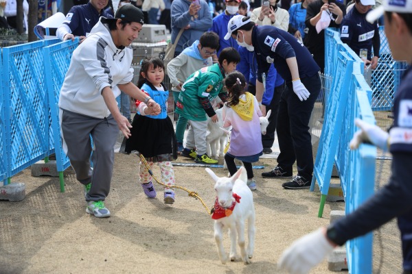 また、ハーフタイムにはスタジアム内でも「子ヤギのかけっこ」が開催。